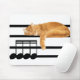 Tabuleiro laranja comprido por gatinho snoozes nas linhas de funcionarios de um gato com partitura musical e um rato amante