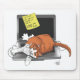 Todo dono de gato sabe da luta - justamente quando você precisa trabalhar, seu gato decide que é o momento perfeito para assumir o controle do seu teclado. Este design engraçado e identificável apresenta um gato laranja e branco relaxado esticado sobre um laptop, completo com uma nota maliciosa: "Computador tomado como refém - O Gato".