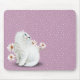 Gato persa branco bonito e flores margaridas em fundo rosa mauve e pontos de alfinetes brancos.