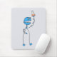 Geek mousepad com um químico de robô cartoon engraçado que segura um balão borbulhante. O robô engraçado está empolgado como se ele estivesse sorrindo e dizendo "Eureka!". Este mousepad robô apelará a geeks de ciência e a alguém que ame química, robôs e ilustrações de desenhos animados.