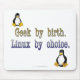 Aqueles de nós que eram geeks nascidos sabem que não há muito nós podem fazer para mudar isso! Contudo, nós podemos fazer muito em termos de escolher nosso ambiente de computação. Os geeks reais escolhem Linux para uma variedade de razões, incluindo: É divertimento que tem o controle total sobre nossos computadores; nós preferimos o open source aos mega-monopólios; nós gostamos de obter nossas mãos sujas no innards de nosso OSes; e nós não gostamos de recarregar exceto ao instalar o hardware! "Geek pelo nascimento. Linux pela escolha."