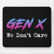 Gen X - We Don't Care. This funny retro Gen X accessory is a great gift for a Generation X woman, man, husband, wife, boyfriend, girlfriend, father, mother, dad or mom who grew up in the 1970s, 1980s or 1990s. This vintage design is perfect for Gen Xers who remember the 80s and 90s, and who have nostalgia for icons, movies, music, bands, and tv shows from the eighties and nineties era.