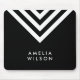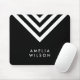 Pasta preta moderna do rato com um padrão de fevron minimalista em branco que pode ser personalizado com o seu nome. Personalize-o substituindo o texto do marcador de posição. Para obter mais opções, como alterar a fonte e seu tamanho, clique no botão "Personalizar". *Observe que a Marca d'água do Zazzle que aparece na visualização de zoom NÃO aparecerá no produto impresso final. © Rosewood e Citrus