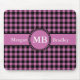 Um mousepad de gingham controlado, rosa e preto, totalmente personalizável. Personalize-o com o seu monograma e primeiro e sobrenome, alterando o monograma e os nomes dos modelo. Disponível em um intervalo de opções de cores no repositório de padrões do Bolinhas & Pinstripes.