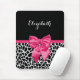 Um mouse feminino com um padrão de girafa preto e branco em tendências e uma fita rosa-quente na moda amarrada em um arco bonito. Personalize este design de impressão de design chic adicionando o nome da sua adolescente. Imagem impressa plana, não arco real.