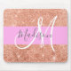 Glam e rosado feminino, pêssego, brilho dourado brilha o nome do monograma branco e o mouse pad inicial. Seu nome personalizado e monograma são escritos em um elegante roteiro escrito à mão com um fundo rosa. Você pode alterar a cor do texto, o estilo e o tamanho da fonte usando a opção personalizar. Um aniversário perfeito ou presente de Natal!