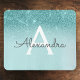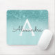 Mousepad Girly Glam Teal Blue Glitter Monograma