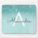 Glitter Monograma com Glitter de Azul Aqua Azul de Teal Girly. Este Mousepad pode ser personalizado para incluir seu primeiro nome.
