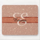 Um mouse elegante com efeito de brilho rosa dourado no fundo e uma fita horizontal de um rosa dourado escuro. O estilo, a cor e o posicionamento da fonte podem ser alterados, bem como o posicionamento e o tamanho da fita.