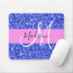 O brilho azul escuro/ marinho e brilho cor-de-rosa brilha o nome do monograma branco e o mouse pad inicial. Seu nome personalizado e monograma são escritos em um elegante roteiro escrito à mão com um fundo rosa. Você pode alterar a cor do texto, o estilo e o tamanho da fonte usando a opção personalizar. Um aniversário perfeito ou presente de Natal!