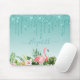 O moderno e elegante Pad de Mouse Glitter Teal Fashionável e Trendy personalizado com seu Nome. Script de na moda. Coloque brilho com faíscas. Inclui Watercolor Tropical Floral, Folhas e Flamingo Rosa.