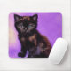 Mouse Pad com um gato estilo Van Gogh com fundo roxo. Este gatinho preto olha para o espectador adoravelmente! Um presente de excelente para amantes de gatos e colecionadores de arte holandeses!