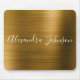 Mousepad Comercial de Folha Metálica Dourada Faux com tipografia branca para assinatura monográfica. O pad do mouse Faux Foil Mouse Dourado de Assinatura Monogramada pode ser personalizado com seu nome. Entre em contato com o designer para obter itens correspondentes personalizados.