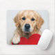 Mousepad Golden Retriever With a Red Heart Pillow