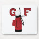 Um design do golfe em t-shirt, em hoodies, em canecas, em mousepads, nas bolsas, e em mais golfing com um saco de golfe, um clube, uma bola de golfe, e um texto vermelhos que leia o "golfe".
