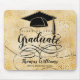 This elegant mousepad makes a unique gift for the grad. This design features a black graduation cap with the word "Graduate" in modern script typography accented by swirly flourishes on a background of faux gold with confetti. Below is your class year, name and school for you to personalize. Designed by world renowned artist ©Tim Coffey.