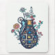 Esta design apresenta uma granada de mão segurando um buquê de flores.
