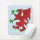 Um grifo heráldico aparece nas cores do Natal de vermelho e verde nesta design original de Richard H. Fay.