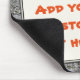 Que está em sua mente? Adicione sua indicação neste tapete do rato feito sob encomenda! Foto alterada Digital do homem novo que shouting seu texto em uma etiqueta retangular branca. O fundo é foto do granito cinzento com detalhes do musgo.