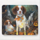Mousepad Halloween Brittany Spaniel Com Pumpkins Assustado