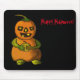 A design mostra um homem-abóbora pintado à mão sobre um fundo preto com o escrevendo "Feliz Dia das Bruxas". Você pode mudar facilmente a cor do plano de fundo e substituir o escrevendo por suas próprias palavras clicando no botão "personalizá-lo".