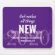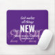 Stylish purple MOUSE PAD for the New Year 2020 with the message GOD MAKES ALL THINGS NEW with HAPPY NEW YEAR in white typography. The 2020 is written in lighter mauve script, with the customizable Bible verse from Revelation. This is an ideal New Year giveaway for work colleagues (or employees), women's groups, etc. and is part of the NEW YEAR Collection by Berean Designs.