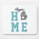 Home É Michigan O Pad Do Mouse Estatal Dos Lagos Excelentes. A letra azul-lacrimogênea com a forma de Michigan como "O". Michigan está cheia de um impressão floral em cinzas e azul com um coração branco. Mostre seu amor pelo seu estado natal! Design de The Michigander.