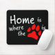 Uma peça com a citação "Casa é onde está o coração", este mouse pad tem as palavras "Casa é onde está o [quadro de impressão de pata]", com a pintura impressa em vermelho, representando o "coração". O presente perfeito para amantes de estimação.