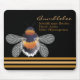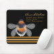 Este design contemporâneo apresenta um padrão geométrico de coloração dourada das colmeias, mamangabas e um fundo preto.