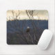 Uma águia careca, empoleirada numa árvore, ao lado do rio Hudson. Sol e nuvens do dia passado.
