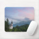 Mousepad Igreja com montanhas alpinas no pôr do sol