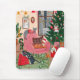 Óptica ilustração de Natal retrô com gatos ao redor da árvore de Natal, olhando presentes, deitados numa cadeira, olhando para uma cidade na neve. Arte original de Caroline Bonne Müller