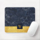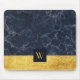 Pasta do mouse do computador laptop com um impressão de textura azul-mármore azul falso e faixa de ouro faux com um monograma personalizado.