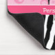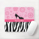 Faça uma indicação de forma com este mousepad na moda com um teste padrão preto e branco da zebra na parte inferior e as flores retros cor-de-rosa femininos o na parte superior com uns calçados colocados saltos das bolinhas elevação bonito. Personalize adicionando seu nome. Aperfeiçoe para o fashionista em cada menina adolescente!
