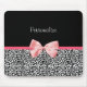 Um mousepad preto e branco na moda do impressão do leopardo com um arco cor-de-rosa bonito da fita envolvido como um presente. Personalize adicionando seu nome. Aperfeiçoe o presente para uma menina feminino adolescente!