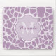 Adicione a forma e o dom a seu estilo pessoal com estes chique e luz feminino - mousepad roxo do monograma do impressão do girafa. Personalize este design animal do impressão da lavanda na moda adicionando sua inicial conhecida e monogrammed.