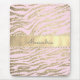 Uma zebra brilhante dourada em um backround cor-de-rosa com uma fita brilhante brilhante com uma borda de colar pérolas onde você pode personalizá-la. Trendy Glam Chic.