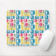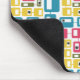 Este mouse pad tem uma design moderna do século médio de retângulos arredondados, alguns dos quais são conectados e alguns deles têm esteritivos, em cores retrorativas de vermelho, ouro, verde e turquesa. Se você gosta do design, mas prefere cores diferentes, me mande mensagem.