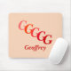 Inicial (replica 5 vezes em diagonal escalonada) e seu nome. Personalize ainda mais alterando a cor de fundo (o padrão é rosa/bege). O início aparecerá em cinco tons cada vez mais escuros de vermelho da esquerda para a direita superior. O nome estará em vermelho mais escuro.