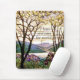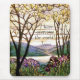 Reprodução lindo da janela de vitral de Tiffany do vintage de uma cena da natureza com um verso da bíblia: Eu superei o mundo! - Jesus. Mousepad.