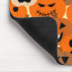 Este mouse pad tem um design de pinos-o-lanternas com diferentes faces se repetindo em cada trimestre.