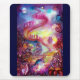 Impressão multimédia surreal, colorida, caprichosa, fantástica, em brilhos dourados, azul, verde, vermelho, rosa, amarelo, cor púrpura com folha de ouro e prata, O tema diz respeito a arquétipos e simbolismo alquímico medieval. Trata-se de uma visão destilada do imaginário coletivo occidental e oriental que busca imagens remotas das profundezas do misterioso jardim das sombras perdidas.