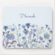 Adicione um toque de natureza ao seu espaço de trabalho com nosso Mouse Pad de Flores Silvestres Aquarela Azul Monogramado, apresentando um prado elegante de centáurea azul e charme botânico.