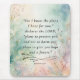 Esse design de aquarela apresenta botânicos delicados em tons suaves de azul, verde e coral, criando uma atmosfera serena e sonhadora. A mistura suave de cores evoca um sentido de tranquilidade e harmonia. O universo Bíblia inspirador, Jeremiah 29:11, está no centro desta composição, elegantemente exibido, nos lembrando de esperança e propósito divino. O efeito geral é elevar e acalmar, fazer uma adição perfeita a qualquer espaço que precise de encorajamento e serenidade. Esta trabalho de arte captura a essência da natureza e da fé de uma forma visualmente espantosa.
