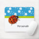 Personalize adicionando seu nome a este teste padrão floral azul e branco na moda com uma listra verde e vermelho bonito um joaninha manchado.