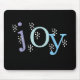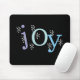 Cartões de cartões de natal, sacos de tote, canecas, T-shirts e outros artigos de férias com lavanda, teal, texto azul e flocos de neve com a menção "JOY"!