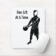 Um vetor no preto de um homem da carne sem gordura e do ajustado que faz elevadores com um peso do kettlebell. O espaço negativo é usado para os esboços. O texto lê "um elevador de cada vez" que é um lembrete que não há nenhum atalho à malhação e a estar magro e à olhar bom. Uma mudança é somente possível com o todos os esforços psto dentro. Você pode igualmente personalizar a sua própria mensagem.