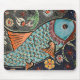 Belo peixe koi com padrão de mosaico entupindo com cor para iluminar seu dia e trazer boa sorte para você. O koi é um azul bonito e o fundo é uma mistura de azul preto e escuro com peixe-estrela e água-viva. Design criado por Black Brook Photoographic com gráfico de Pixabay setembro de 2014.