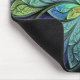 As folhas do vitral do falso do verde e da turquesa moldam uma flor central nas máscaras de azul e de roxo.
