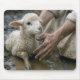 Um cordeiro delicado repousa na lama enquanto é gentilmente salvo pelas mãos de um pastor.